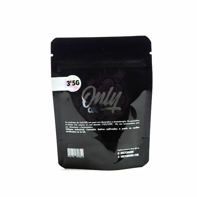 Este producto tiene como fin uso decorativo y/o aromático, está prohibido su consumo. Biomasa de cáñamo proveniente de semilla certificada. El nombre de la variedad y la información contenida en este envase están destinados exclusivamente para fines comerciales.