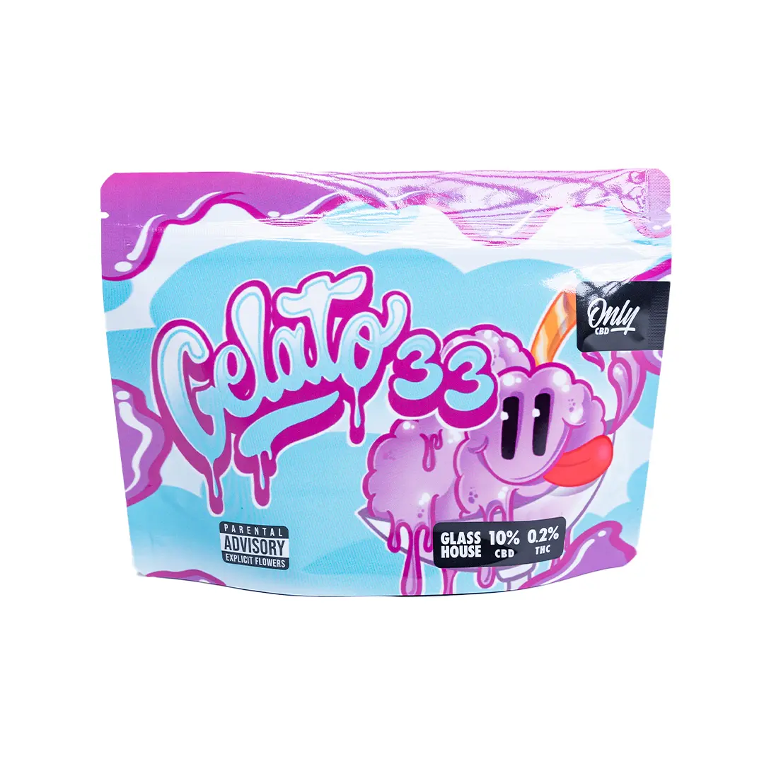 La flor de CBD Gelato 33 es una variedad conocida por su extravagante perfil de terpenos distintivo que le hace tener un perfume delicioso. Gelato 33 nace de una extraordinaria mezcla entre Sunset Sherbet y Thin Mint GSC, dos cepas muy populares en la comunidad cannabica.