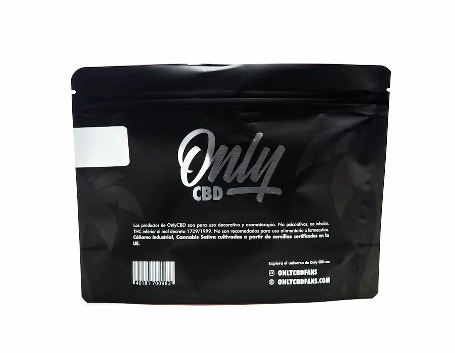Este producto tiene como fin uso decorativo y/o aromático, está prohibido su consumo. Biomasa de cáñamo proveniente de semilla certificada. El nombre de la variedad y la información contenida en este envase están destinados exclusivamente para fines comerciales.